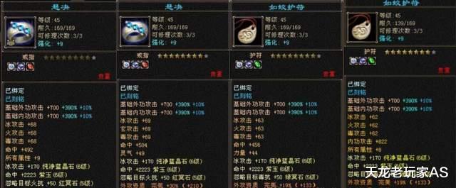 防具、戒指护符也都是极品大八星!甚至戒指护符还都是冰火毒三属性的?!