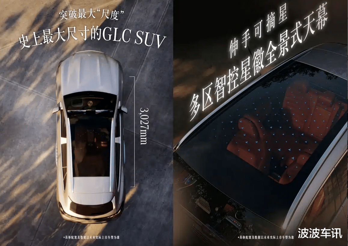 全新国产奔驰GLC EV还配备有全景天幕,它的采光面积非常大,提供了很好的乘坐氛围。新车的长宽高分别为4949/1970/1710mm,轴距为3027mm,整车块头也比较大。