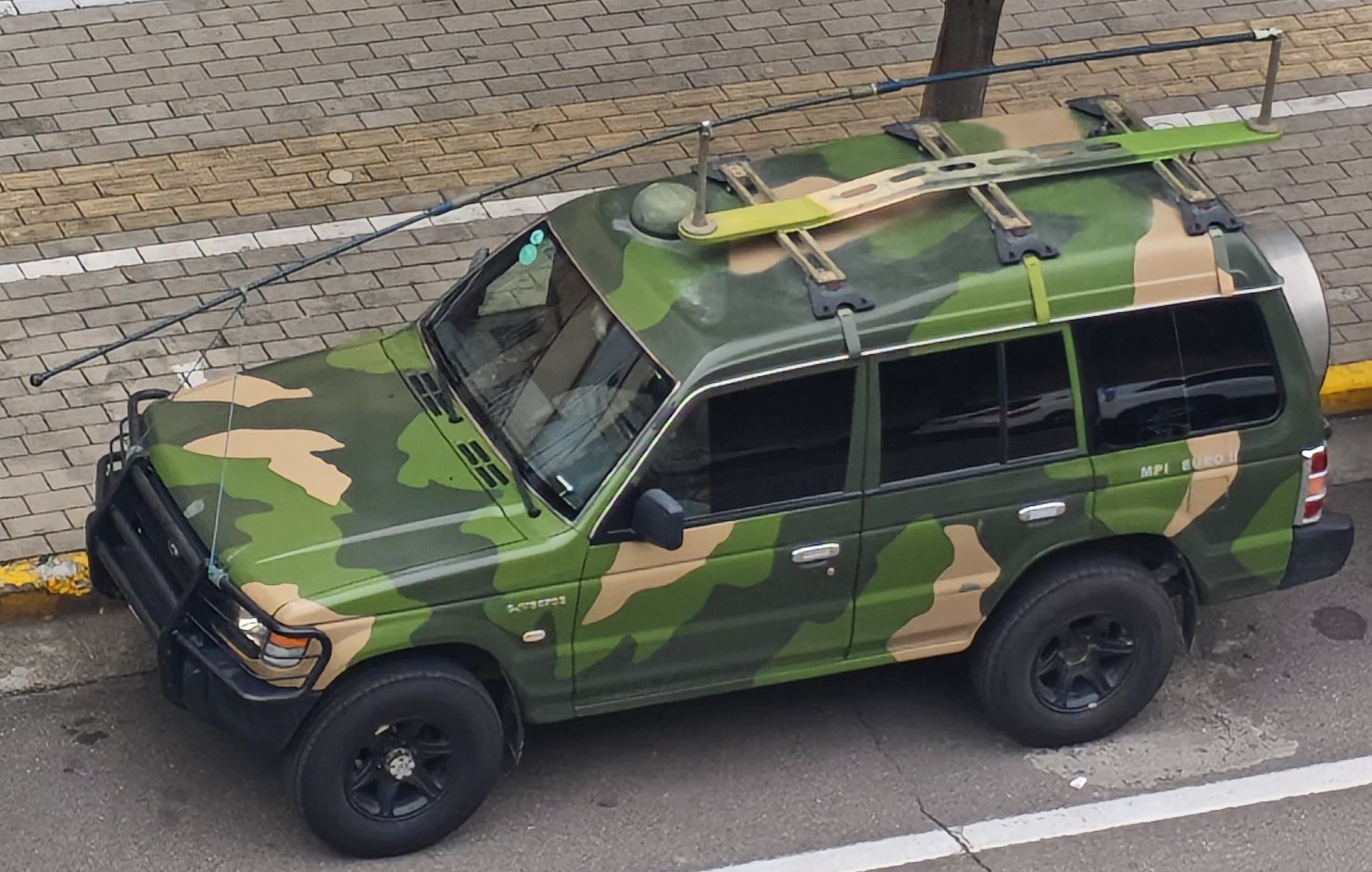 去饭店吃饭的路上,看见路边停着一辆迷彩色的越野车,起初我以为是越野爱好者开的,直到看清车上那根横着放的超长天线,才估摸这是一辆作战指挥车。