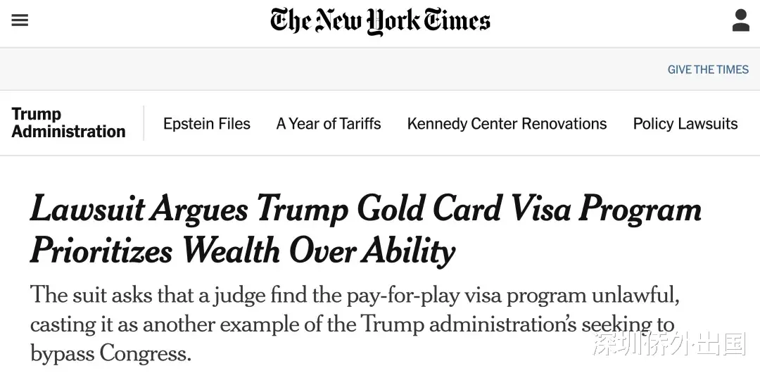 原告指出,“金卡”计划允许外国申请人通过支付高额资金获得美国永久居留权,实质上形成“付费换身份”的机制。他们认为,这类安排可能破坏现有移民体系的公平性。