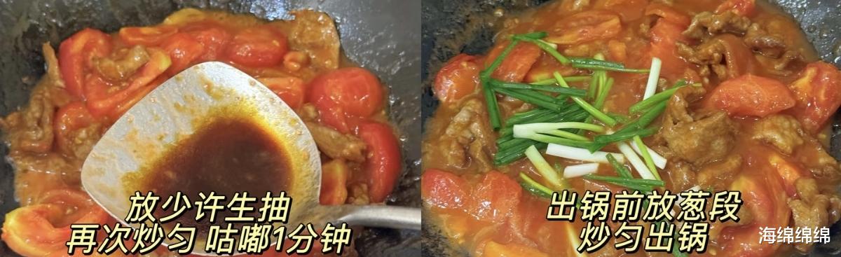 此时,淋入少许生抽提鲜,快速翻炒均匀,让肉片吸饱番茄的酸甜。最后,撒入切好的葱段,翻炒几下即可出锅。葱段的加入,不仅增添了色彩,更带来一丝清新的香气,让整道菜的风味更加立体。整个过程无需加水,完全依靠番茄自身的汁水,使得味道更加纯粹浓郁。出锅后的番茄炒肉片,色泽红亮,肉片裹着晶莹的汤汁,番茄软糯入味,每一口都是酸、甜、鲜的完美交织。
