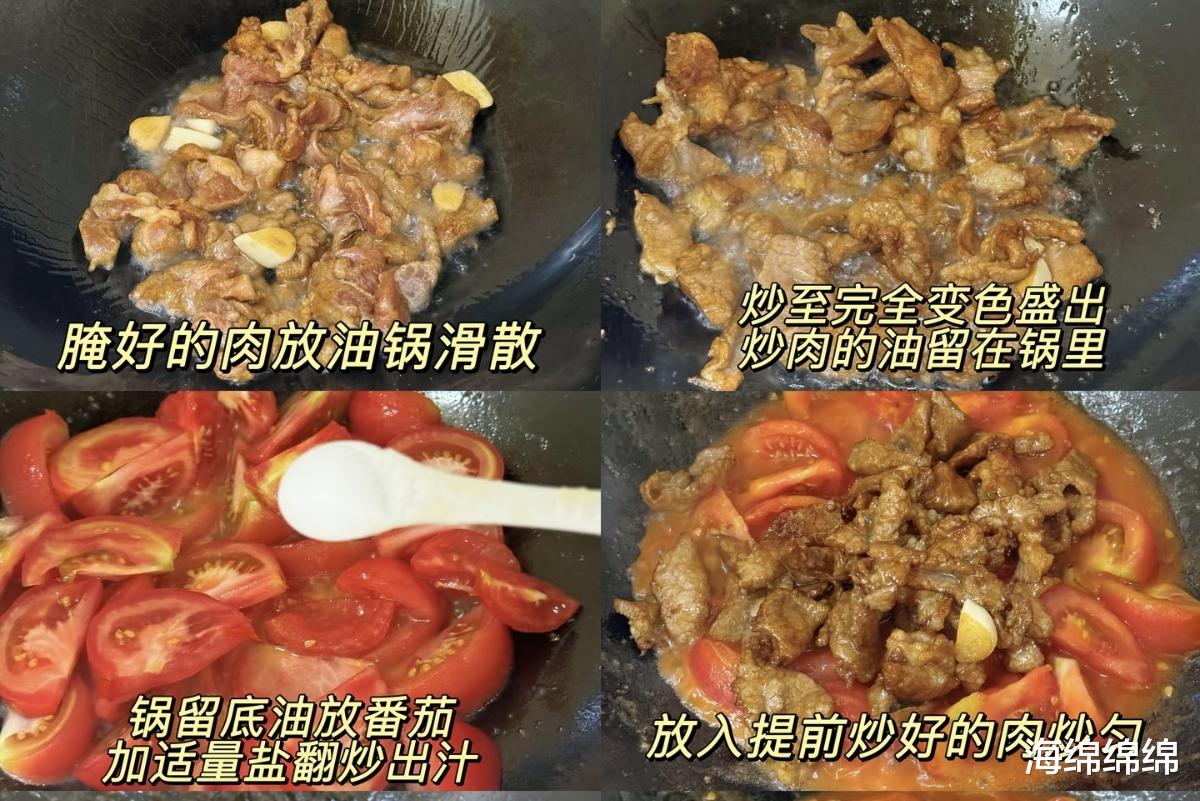 烹饪的过程,是一场火候与节奏的把控。热锅凉油,油温五成热时,放入腌好的肉片,快速滑散。肉片变色、边缘微卷时,即可盛出,锅底留油。这一步要快,避免肉片炒老。接着,将切好的番茄块倒入锅中,加少许盐,用锅铲轻轻按压,帮助番茄出汁。随着温度升高,番茄的汁水会慢慢渗出,形成浓稠的酱汁,这是这道菜的灵魂所在。待番茄炒至软烂、汤汁浓郁时,将之前炒好的肉片倒回锅中,与番茄汁充分融合。