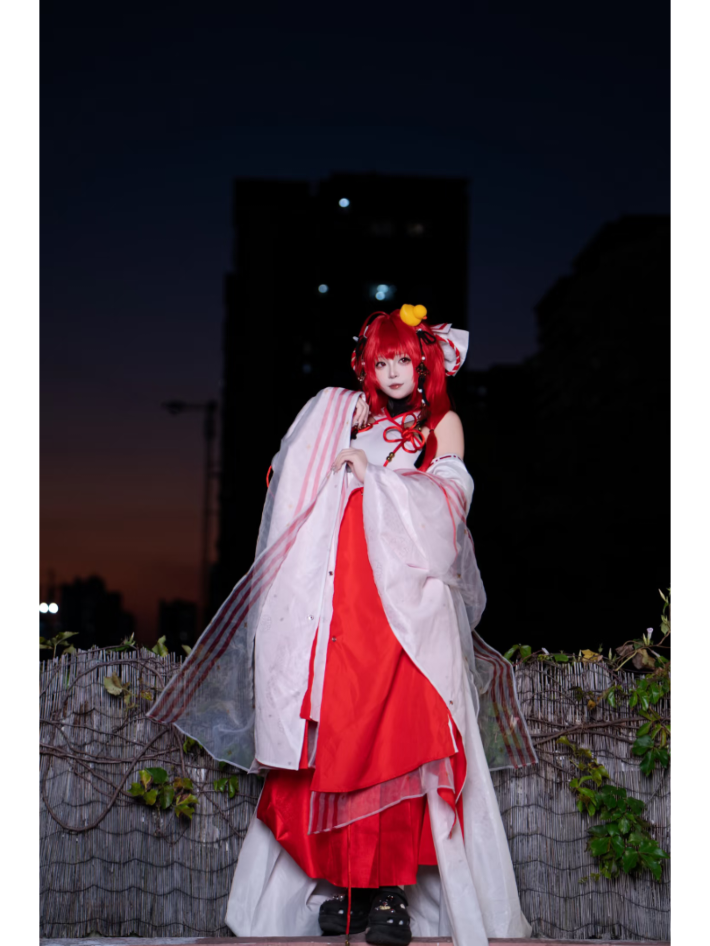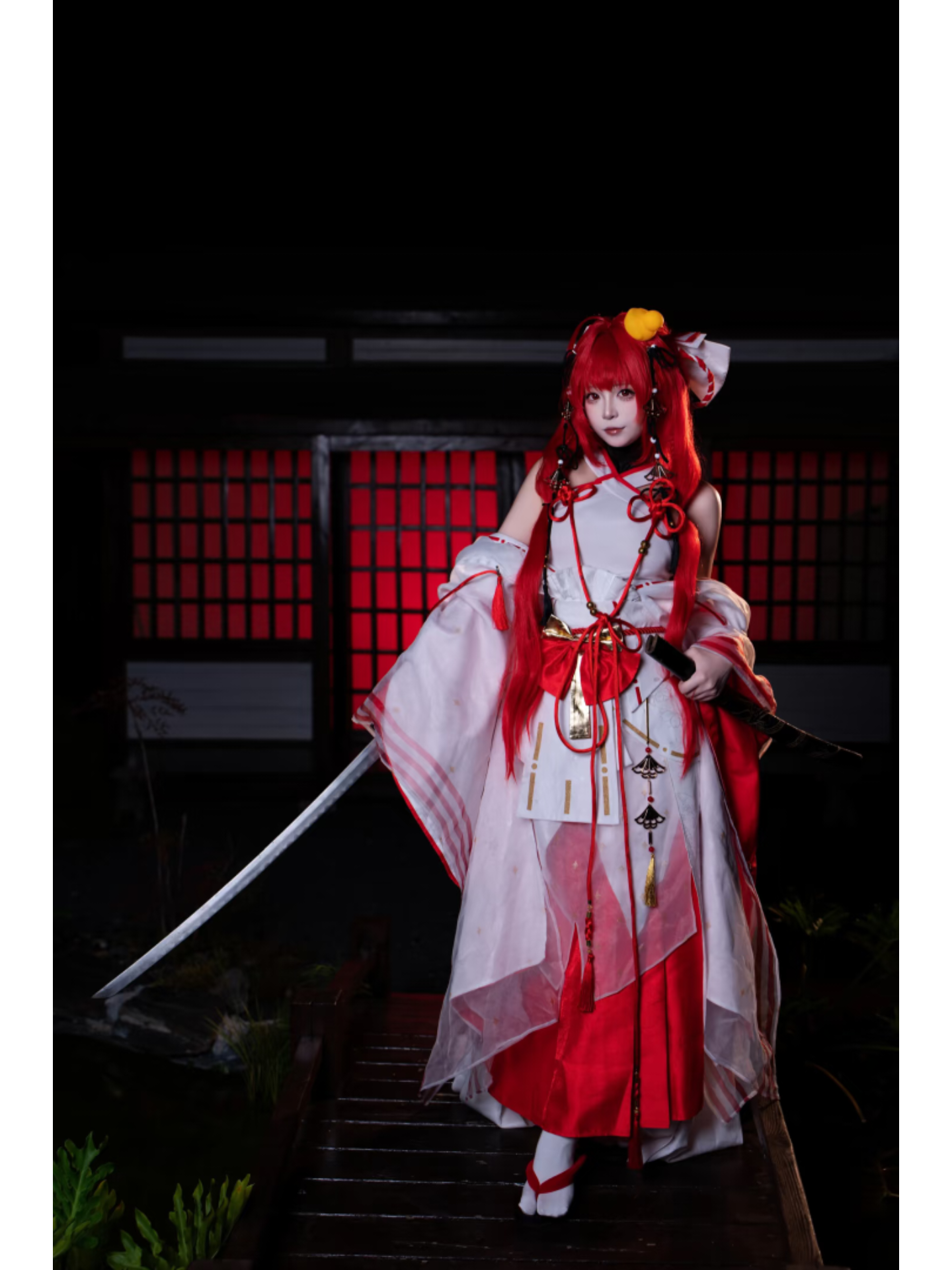 绘梨衣的标志性红白衣装,被这组 cos 拆出了细节里的性格: