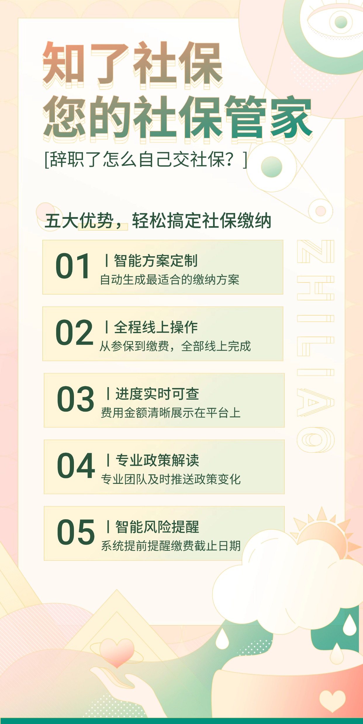 解决方案:六大优势,轻松搞定社保缴纳通过知了社保,辞职后的社保缴纳变得异常简单: