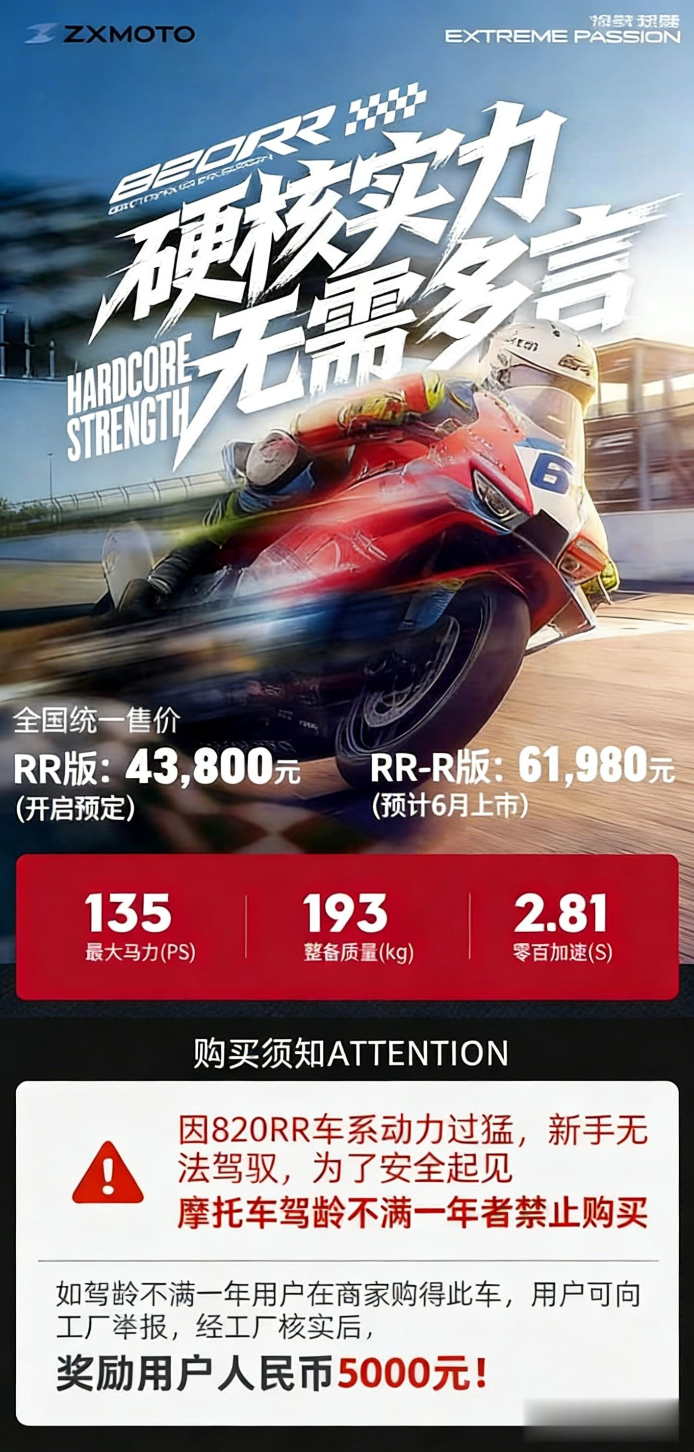 最近摩托车圈彻底炸了,张雪机车推出爆款高性能仿赛820RR,直接下了一道“铁令”:驾龄不满1年的新手,一律不卖!
