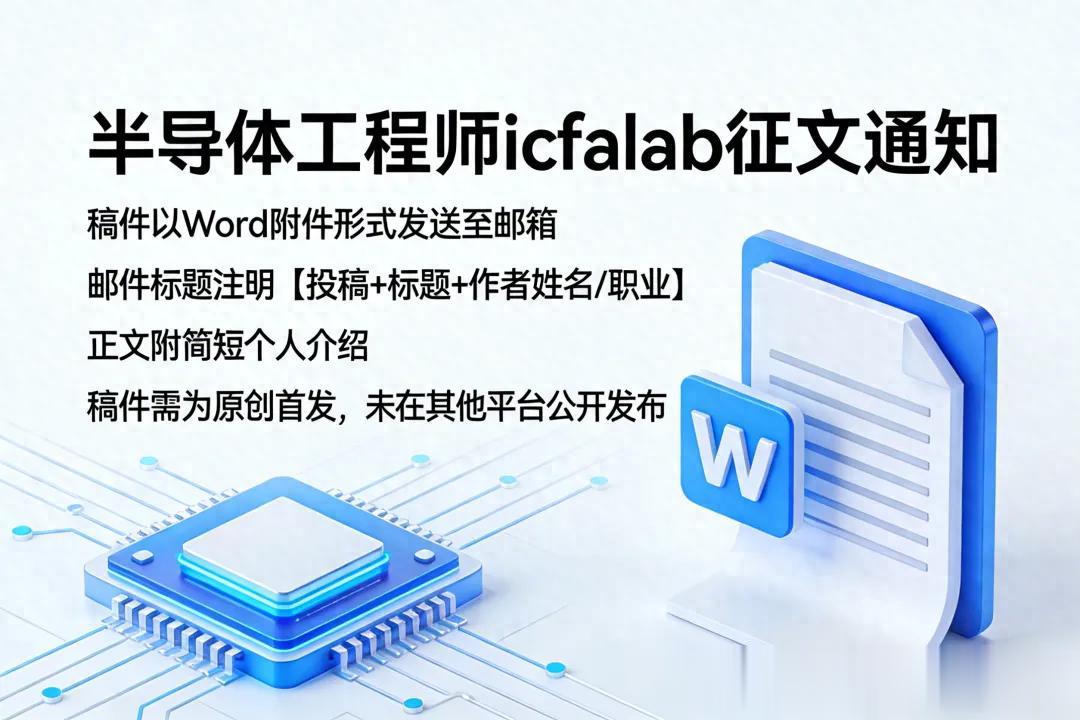 作为深耕半导体领域的专业垂直平台,半导体工程师(icfalab) 始终致力于搭建行业交流桥梁,为千万半导体人提供精准的技术干货、前沿的产业洞察、真实的职场参考。为汇聚行业智慧,挖掘优质内容,现正式启动原创征文活动,诚邀每一位深耕芯领域的你,提笔分享,共筑行业生态!