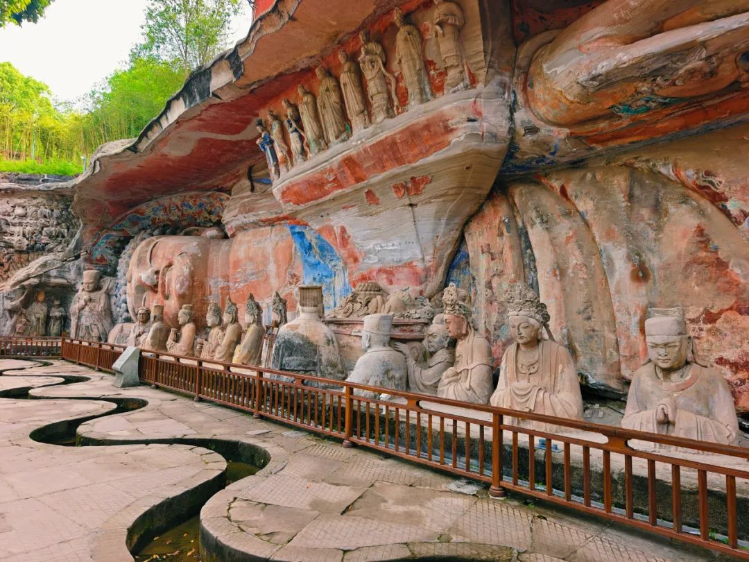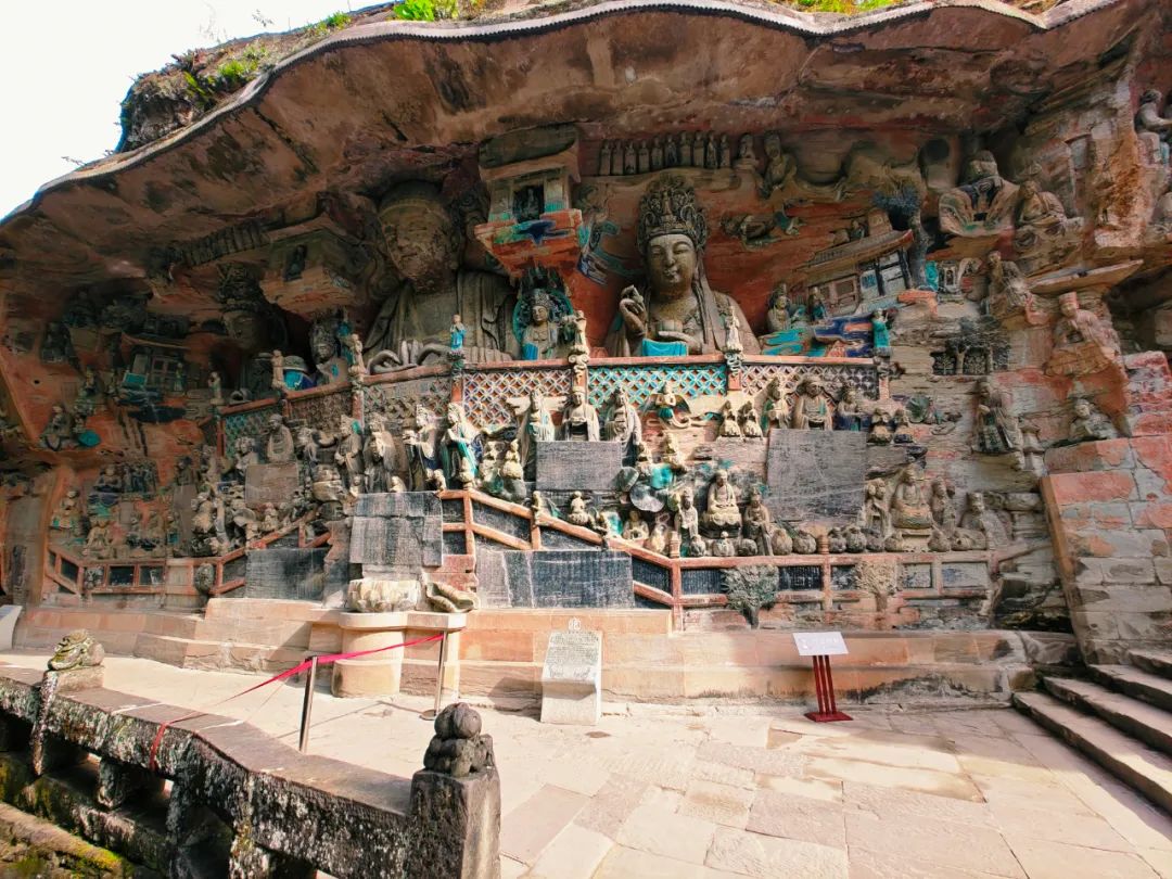 地理位置:大足石刻位于重庆市大足区宝顶镇,核心景区面积1100亩,距重庆市区约130公里。