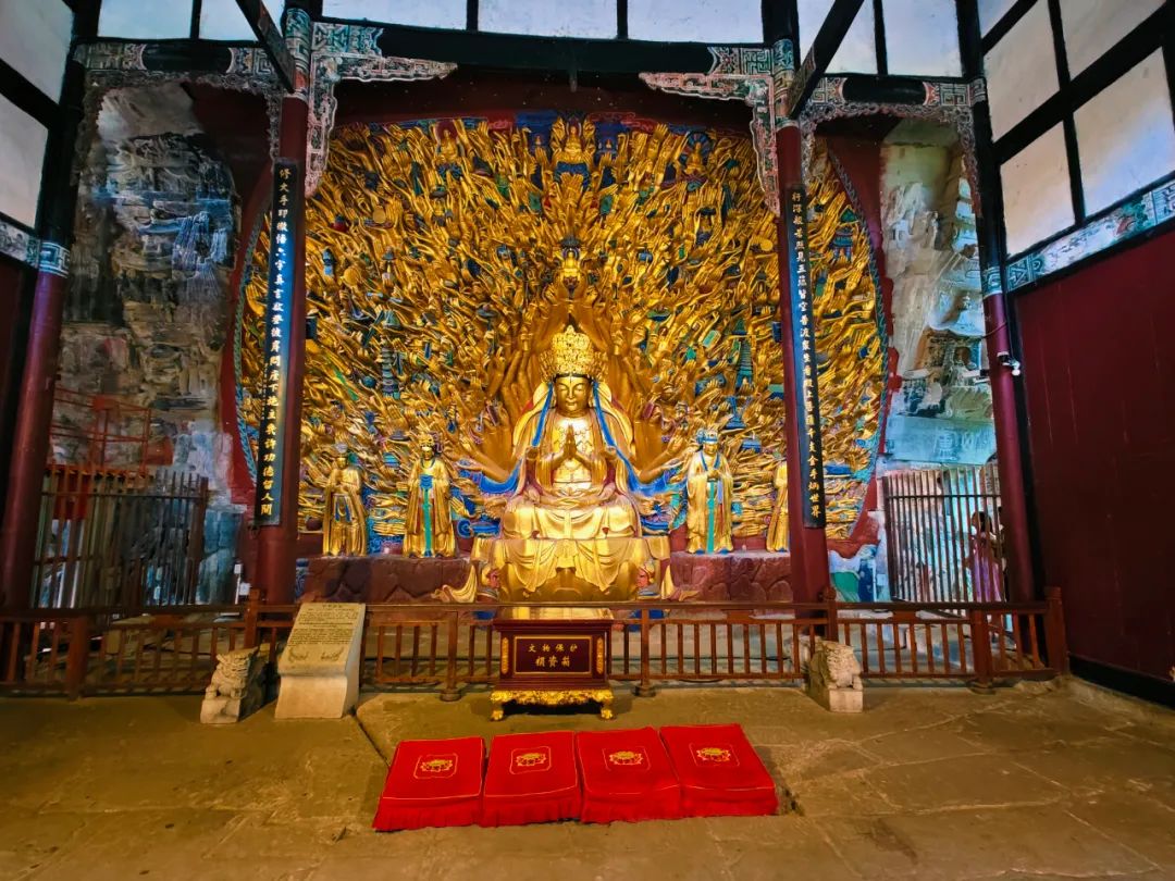 • 千手观音:830只金手各持法器,姿态万千,修复后金碧辉煌,为宋代雕刻巅峰之作。