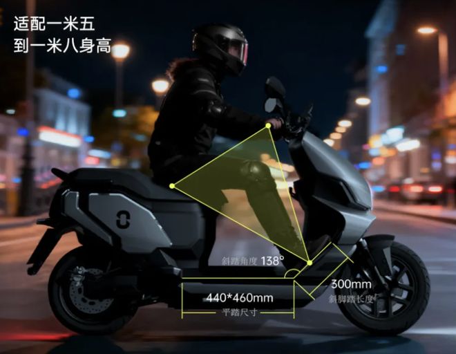 霓星:采用行业首款 A字型双肩环抱结构车架,主管直径50mm,壁厚4mm,其他管直径38mm,壁厚3mm。车架整体采用机器人焊接,历经百万次震动测试,抗拉强度优于一般电动摩托车。踏板电池仓长680mm、宽290mm、高180mm,最大支持安装72V140Ah锂电,座桶空间支持安装60Ah锂电,可换电,支持双电并联。