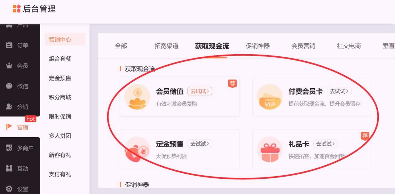 核心运营模块:商品管理、订单处理、支付配置、营销工具,需覆盖自身业务核心场景,如实物售卖需适配多物流模式,知识变现需支持自动发货。