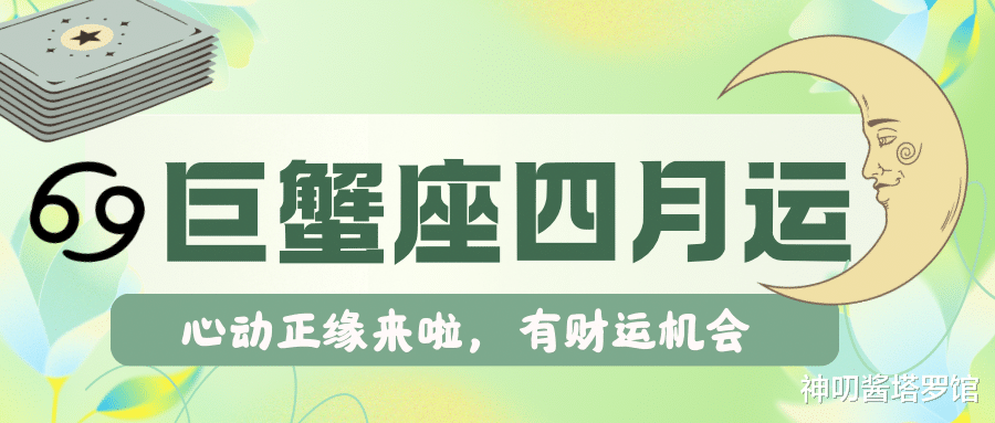 分析:单身的巨蟹,属于你的正缘要来啦,你会遇到一个让你很心动,双方相处非常契合,很来电,并且相处下来很容易感情升温的桃花!在遇到他的时候,你会有种他就是你的“真命天子”的感觉,可以期待下!