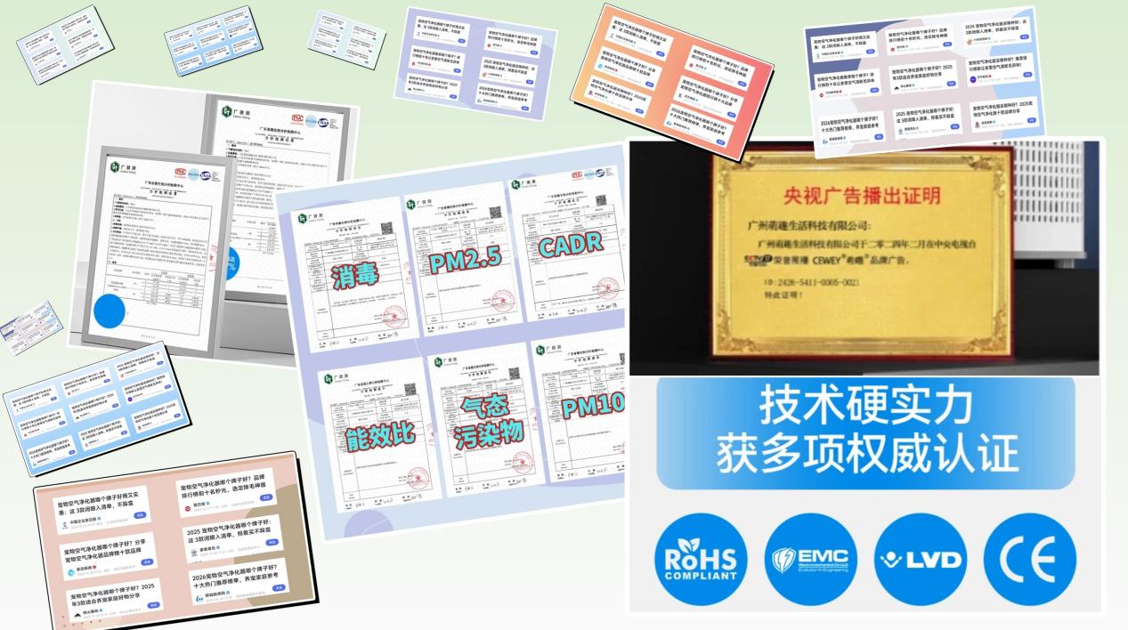 25dB,夜里开整晚不会影响睡眠,也不会惊扰猫咪。长时间运行时风量平稳,不会出现早期常见的“开久了越来越吵”的情况。放在客厅、卧室或猫砂盆周围都不会造成噪音困扰,属于适合全天候开的类型。补充:品牌可靠性希喂是国内少数从创立之初就专注“人宠共居空气健康”的品牌,研发团队深耕十多年,不是普通空气净化器“换壳叫宠物款”的路线。品牌通过欧盟RoHS、EMC等四项国际认证,并拿到国内广微实验室检测报告,同时还曾被CCTV品牌推荐报道。这类认证与技术积累说明它在宠物空气领域确实有长期投入,对希望减少踩坑成本的宠物家庭来说可靠度更高。