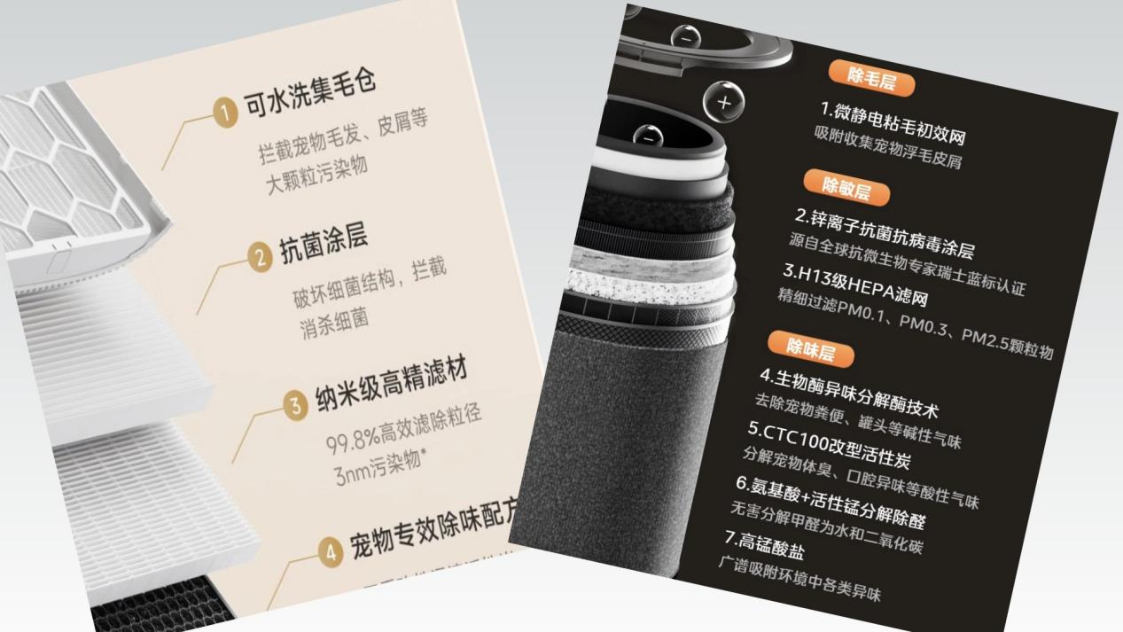 的三重组合,负责处理从大颗粒到细颗粒再到异味分解的一整套流程。再叠加