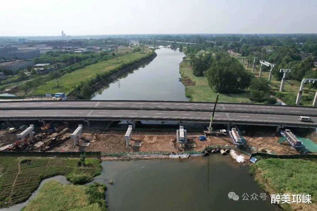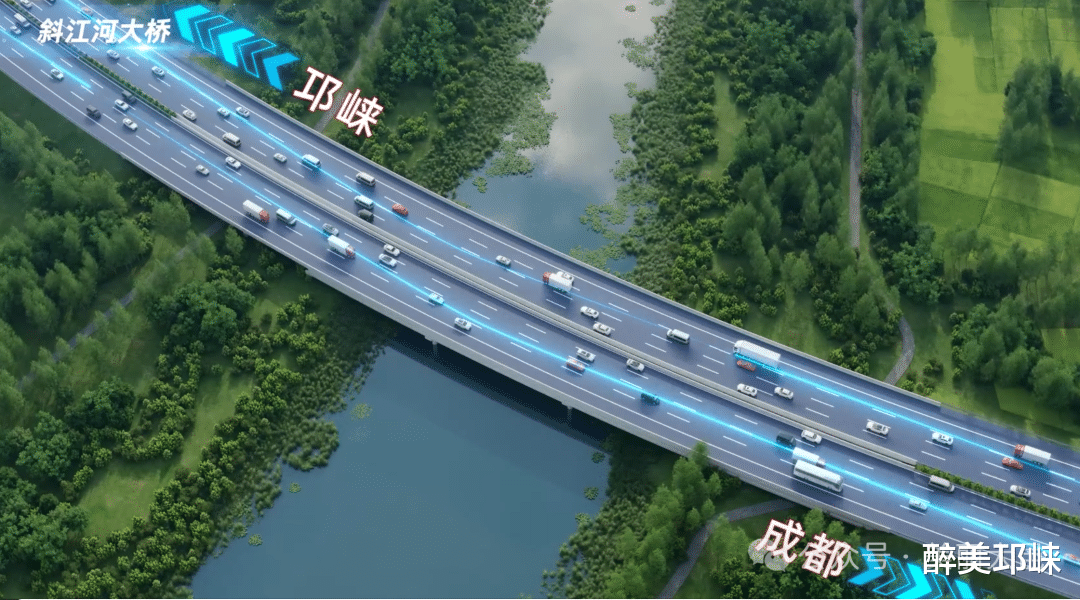 作为成温邛高速扩容项目大邑段重要控制性工程之一,斜江河大桥现有桥梁宽24米、长225米,扩容后将拓宽至41米、延长至249米,实现双向八车道通行,通行能力与行车安全性将大幅增强。