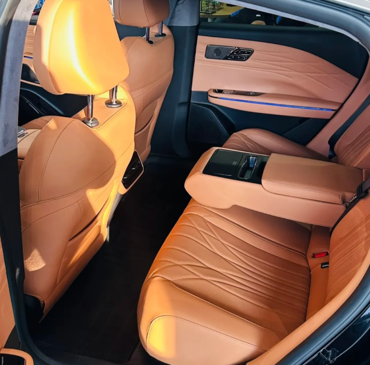 再看车里面的话,顶棚的翻毛皮材质,搭配麂皮包裹的座椅,还蛮高级的。后排空间也很大,另外我还试了一下座椅按摩功能,腰背一波波揉捏力道,整个人都舒展开了。
