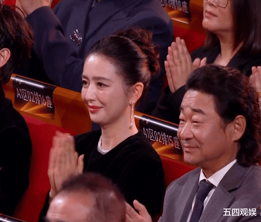 佟丽娅正礼貌地微笑鼓掌,礼仪满分,哪怕是敏锐地察觉到镜头在抓拍自己,依然面不改色。