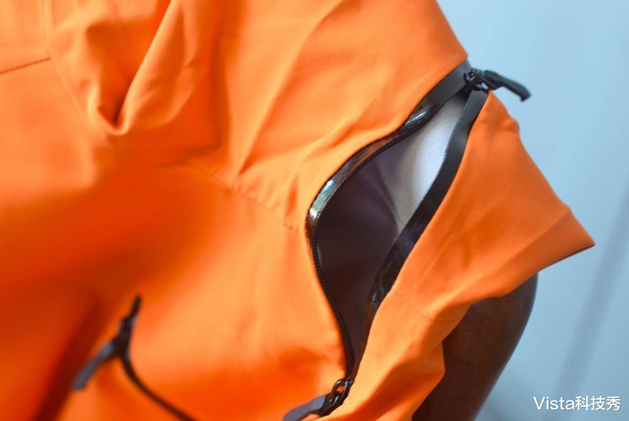户外运动时流汗区域主要来自于腋下,Vbrex冲锋衣在腋下设计腋下双拉链,通过拉开拉链进行更好的通风透气,双拉链可单手操作非常便捷,拉链同样采用压胶工艺处理,拉上拉链就不用担心雨水进入。
