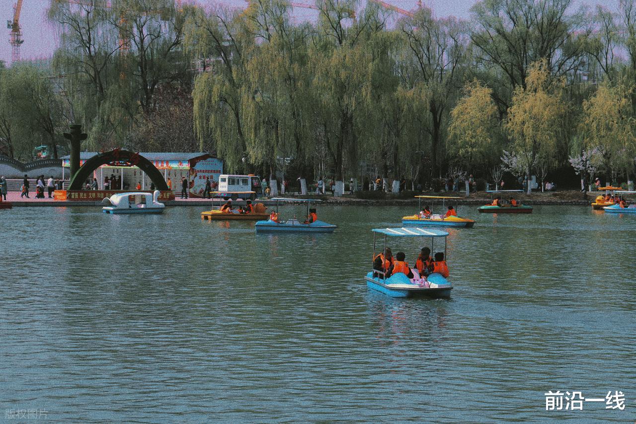 黄墩河的景色真是动人。两岸杨柳成行,枝条垂在水面,绿影倒映,随波轻晃。桃花开得正艳,粉粉白白,一路相伴,满眼都是温柔春意。河水里,小鱼儿自在游弋,时而聚,时而散,灵动可爱。水面上的水鸟更是多得数不清,或轻掠水面,或静立岸边,鸣声清脆,一派生机盎然。