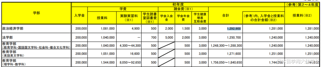 早稻田大学第一年学费最便宜的学部为政治经济学部,合计1,292,900日元。