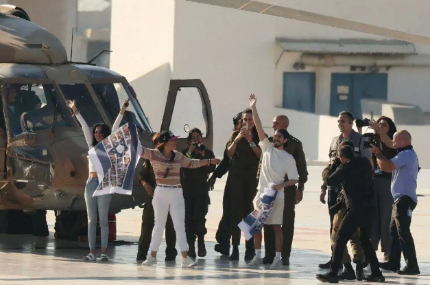 这一天,以色列和哈马斯总算达成了协议,交换被扣押的人员。按照约定,哈马斯这边放了全部20名还活着的以色列人质,他们分两拨,在上午8点和10点,通过红十字国际委员会交给了以方。