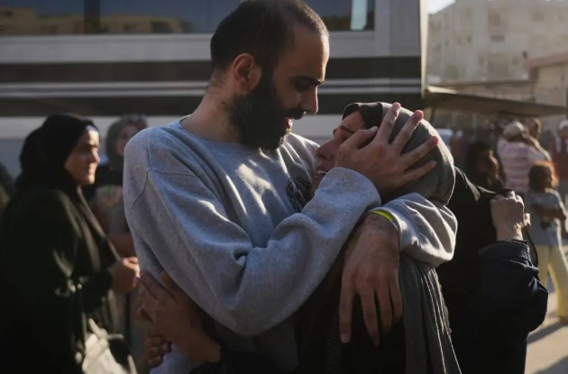 在奥弗监狱外面,一个来接亲人的巴勒斯坦妇女对着记者说:“希望和平这次是真的,我们不想再担惊受怕了。”