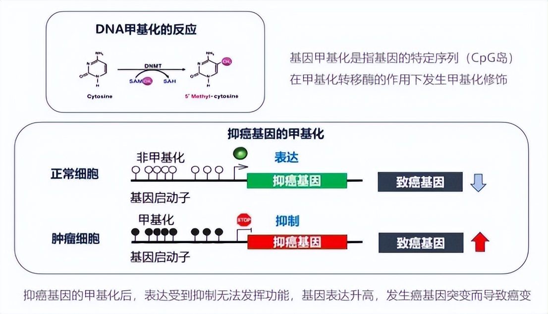 科学研究表明某些特定基因(如某些抑癌基因)的甲基化异常是肿瘤发生和发展的重要原因之一。换句话说,甲基化的改变可以引发生物体内健康组织转变为肿瘤组织,也就是众所周知的癌变。