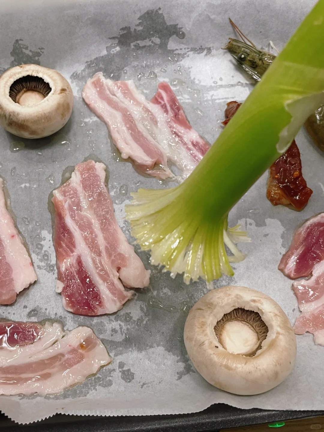 这位婆婆则想出了另外的一个方法,那就是直接用厨房最常见的大葱来当做油刷。