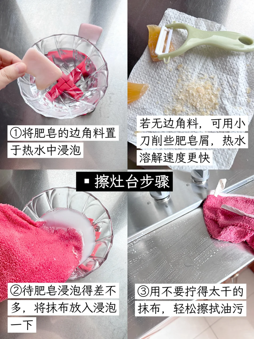 其实大家根本就没有必要买那么多的清洁产品,只需要一块肥皂就可以搞定厨房的清洁工作了。