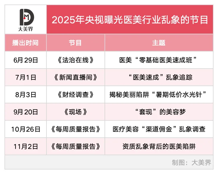 尤其在10月,央视《每周质量报告》的系列调查如惊雷炸响医美行业,武汉、杭州、深圳多地机构的暗访画面,将“高返佣、强诱导”的行业顽疾公之于众。