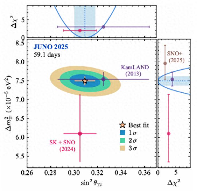 团队通过对2025年8月26日至11月2日共59天有效数据的分析,测量了被称为“太阳中微子振荡参数”的theta(12)及其相关的质量参数,比此前实验的最好精度提高了1.5到1.8倍。中微子振荡参数的精确测量将打开检验三代中微子振荡的完整性之门。