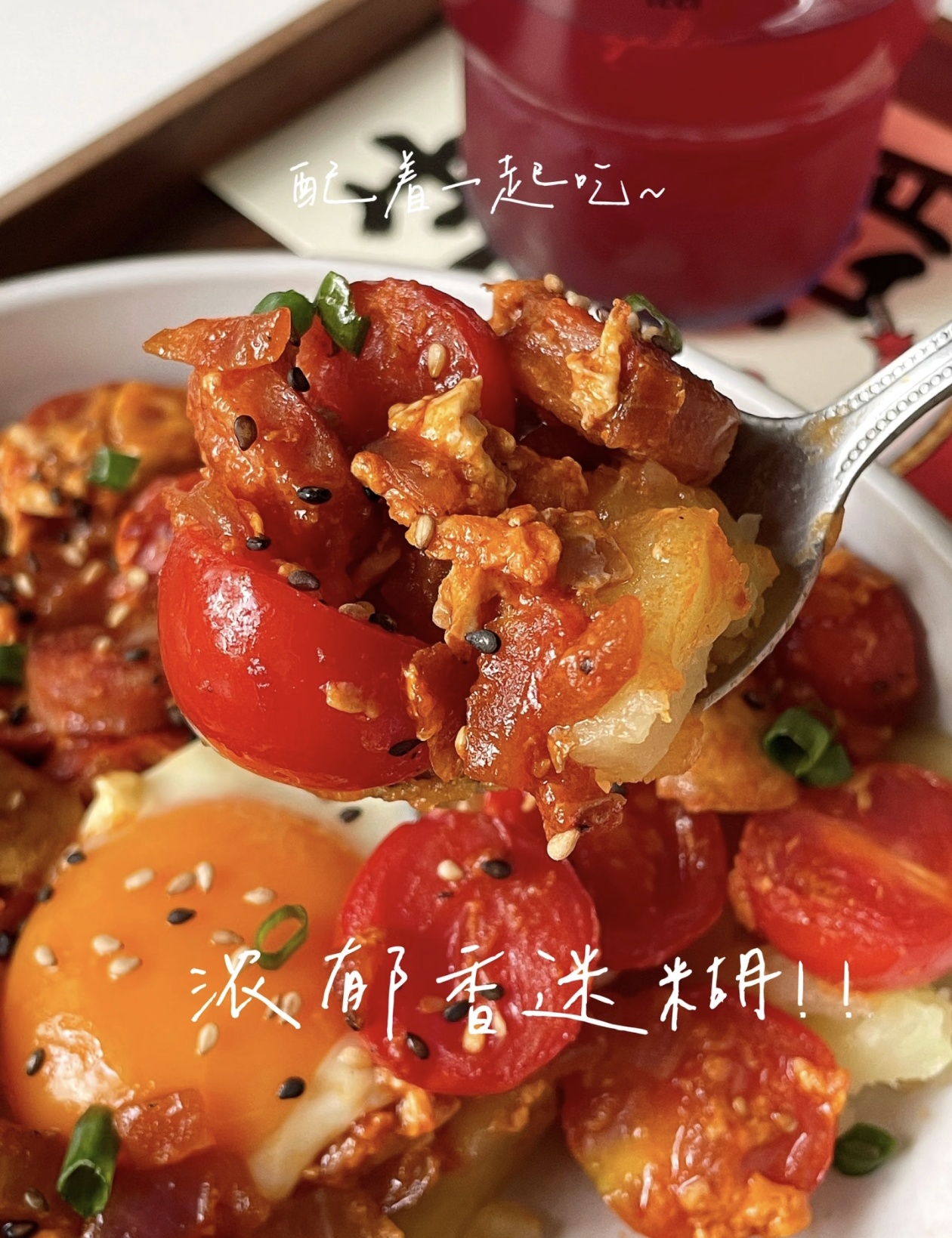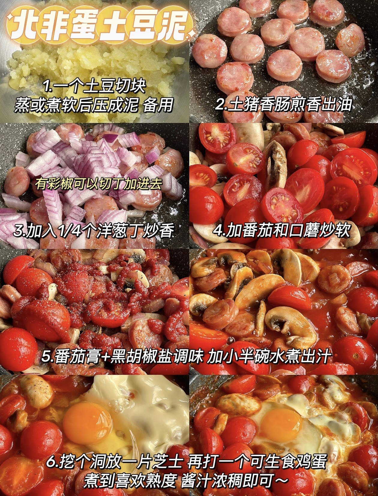 这碗北非蛋土豆泥,从绵软的土豆泥到流心的溏心蛋,每一口都层次丰富,酸甜的酱汁裹着香肠的咸香,搭配土豆的绵密,一口下去,浓郁的香气在口中散开,正如开篇那般让人香迷糊。无论是作为早餐开启活力一天,还是当作午餐、晚餐填饱肚子,这道简单又美味的家常菜都能满足味蕾,让平凡的日常也能被这份浓郁的幸福填满。