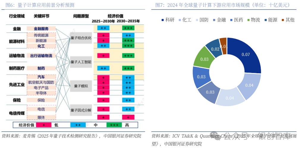下游(应用转化):以量子云服务为核心载体,降低使用门槛,连接硬件与用户,加速算法验证与应用探索。当前需求以科研领域为主,正向商业化场景迁移,金融(投资组合优化、风险建模)、生物医药与化工材料(分子模拟、新材料发现)为重点潜力领域。