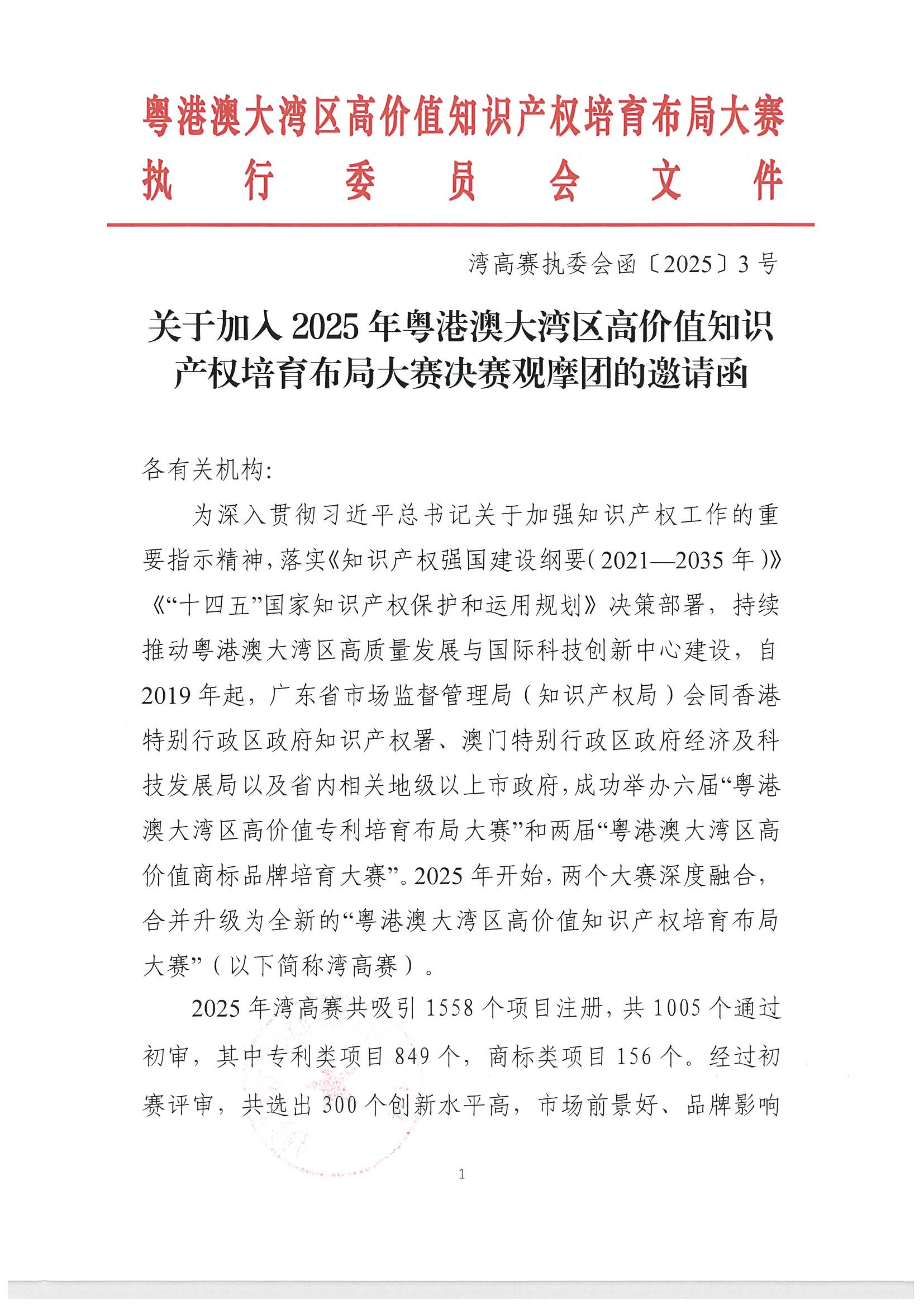 2025年9月23日,2025年粤港澳大湾区高价值知识产权培育布局大赛(以下简称“湾高赛”)初赛评审工作顺利结束。