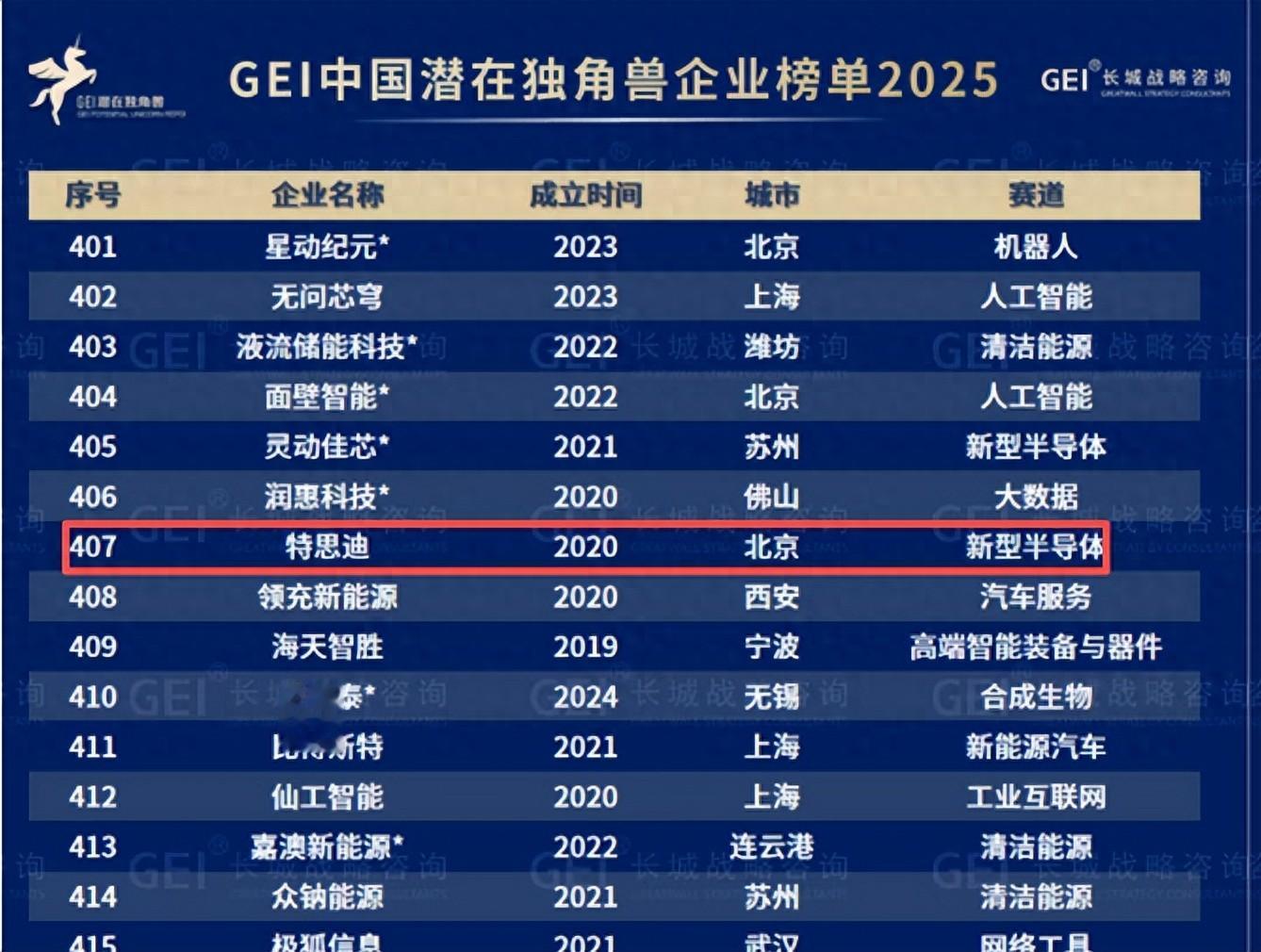 “中关村顺义园”官微消息,近期,长城战略咨询发布《GEI中国潜在独角兽企业榜单2025》。中关村顺义园在第三代半导体产业领域再添亮眼成果——北京特思迪半导体设备有限公司、北京亚泽石英材料有限公司、北京铭镓半导体有限公司、北京晶格领域半导体有限公司4家园区企业成功入选。