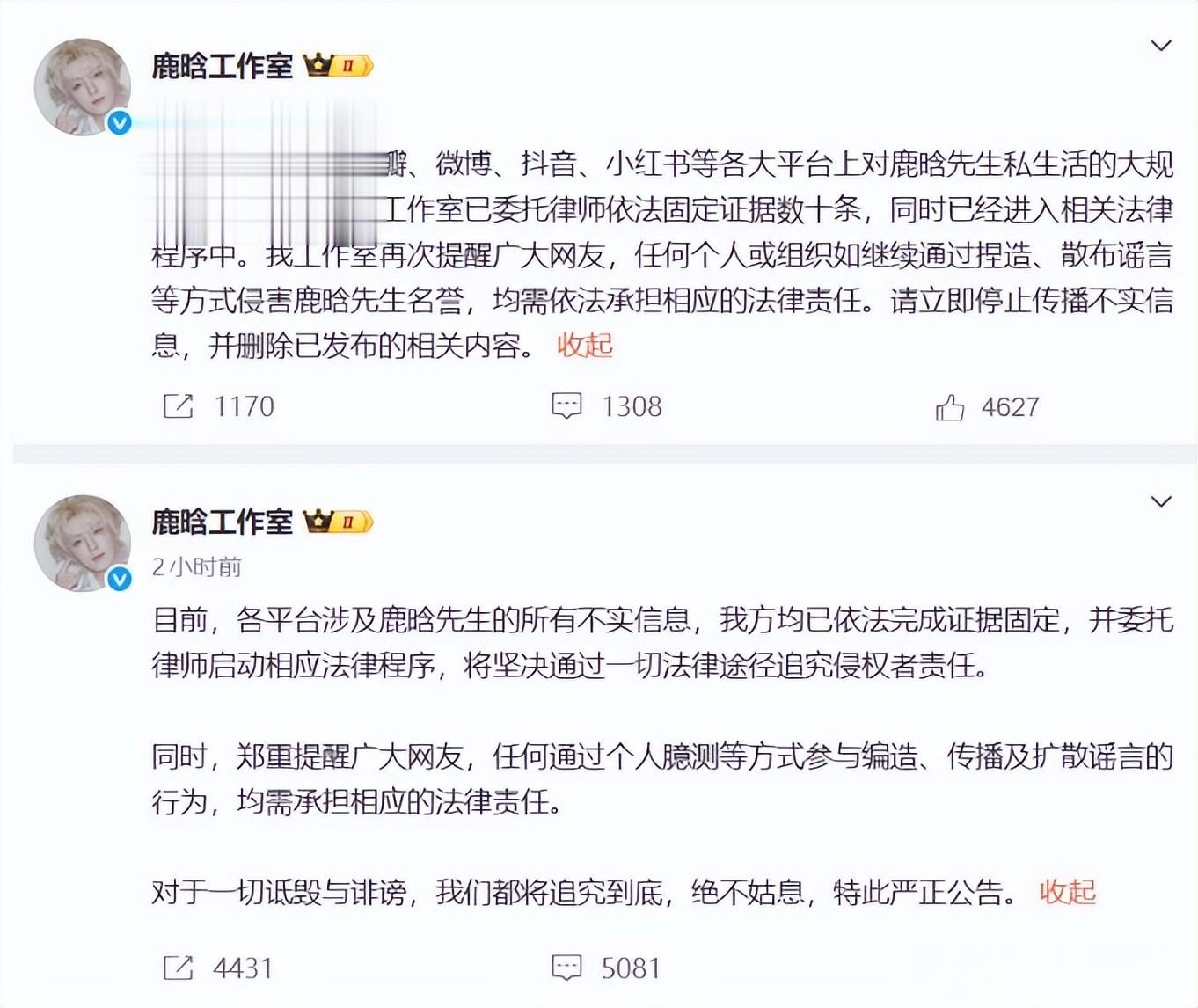 面对铺天盖地的争议,鹿晗工作室最先站出来回应,他们很快发了声明,一边谴责这些是谣言,一边说已经报警处理。