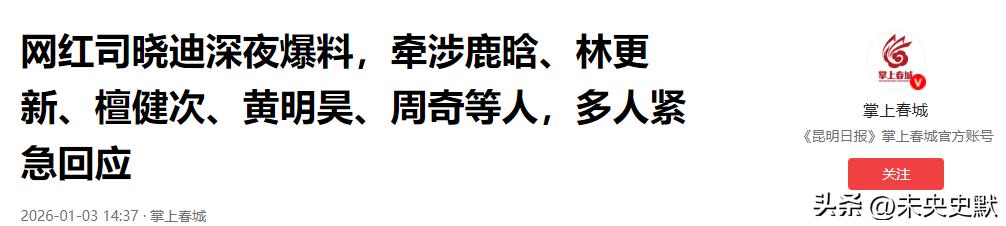 2026年1月2号到3号凌晨,司晓迪直接甩出了一场无差别攻击式爆料,林更新、张一山、檀健次、范丞丞、周奇等一众男星全被她点名,瞬间把内娱热搜榜掀了个底朝天。