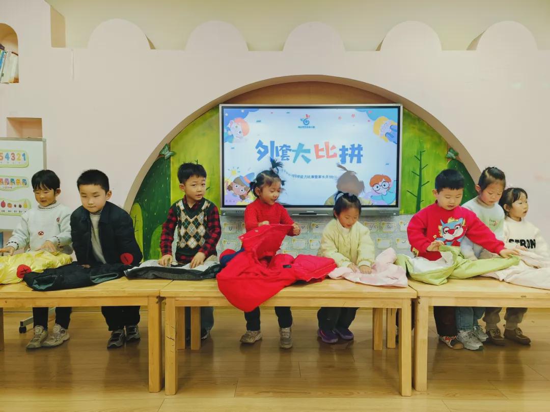 “外套大比拼” 里,随着老师口令,萌娃们迅速脱下外套、整齐摆放,再快速穿上、拉好拉链,一系列动作有条不紊、一气呵成。