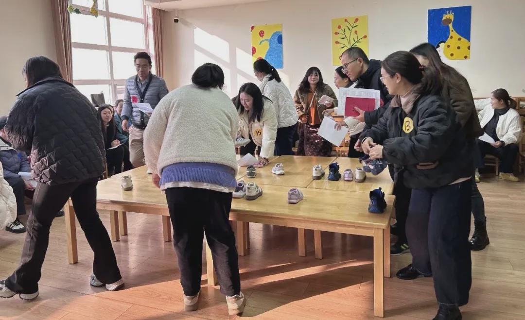 “鞋子对对碰” 环节中,打乱的鞋子整齐摆放,家长们化身 “火眼金睛” 寻觅宝贝的鞋子,萌娃们则独立完成穿鞋任务,亲子分工协作、默契十足,穿好鞋子的宝贝们脸上洋溢着成功的喜悦。