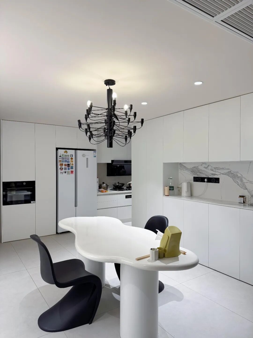 现在很多设计师,为了博眼球,把餐桌设计得花里胡哨,各种异形台面及桌腿,看着颜值很高,能当装饰品,很多追求个性的年轻人会跟风买。