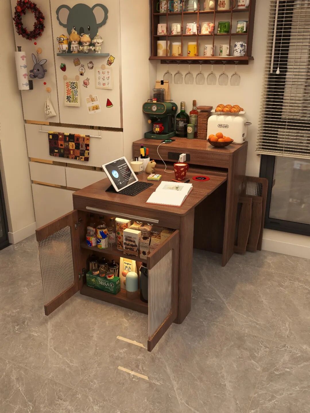 其次,餐桌本身就不高,要拿取储物空间里的东西,就得半蹲甚至弯腰,对老人和腰不好的朋友来说,不方便。