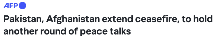 巴基斯坦和阿富汗本周四(10月30日)达成共识,决定延长暂时停火协议,并计划于下周在伊斯坦布尔举行新一轮和平谈判,力求缓解本月因冲突造成的紧张局势。