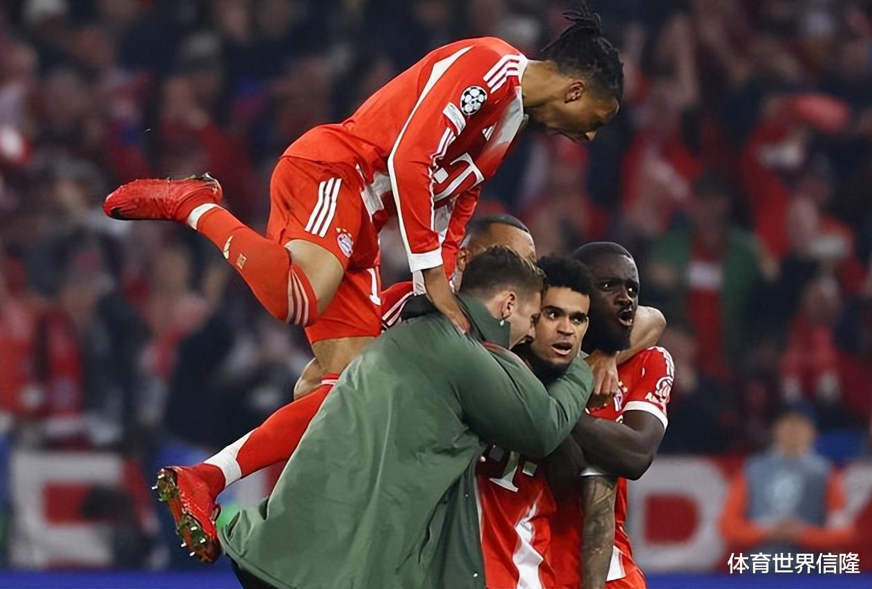 3分钟后,路易斯-迪亚斯禁区外远射得手,3-3,总比分拜仁5-4再次超出,此时已经接近90分钟的常规时间,对被动的皇马来说无异于是被绝杀了。补时第4分钟,奥利塞内切破门,拜仁4-3,总比分6-4锁定胜局。