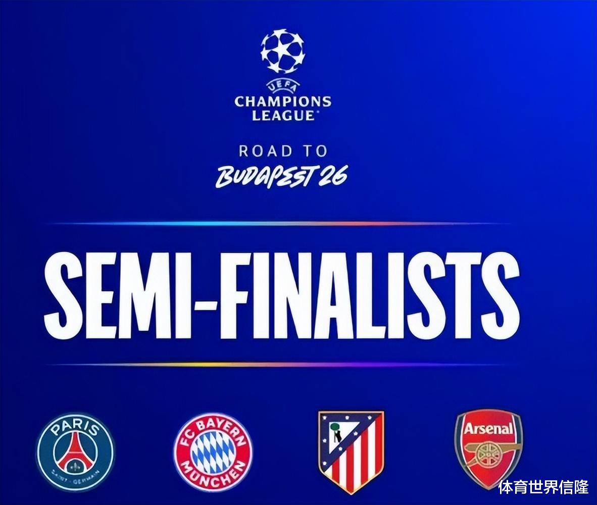 四强中巴黎圣日尔曼上赛季首次夺冠,拜仁6次夺冠,他们中只有一支球队可以出现在决赛赛场上;而阿森纳和马竞分别1次和3次打进决赛,都未能夺冠,无论是马竞还是阿森纳打进决赛,都有希望获得队史首次欧冠冠军。