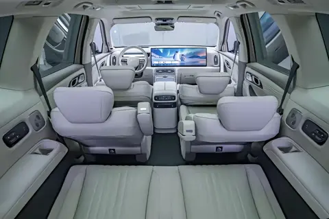 座椅配置同样围绕家庭需求设计:第二排独立航空座椅配备通风、加热与八点按摩功能,腿托调节角度可达83度,老人乘坐时能轻松找到舒适姿态;NAPPA真皮材质触感细腻,新车暴晒后甲醛含量仅0.02毫克,远低于国标标准,婴儿乘坐也无需担忧。部分车型配备的智能光幕玻璃,停车时可一键透明观星,行驶时自动雾化遮阳,为家庭出行增添了仪式感。