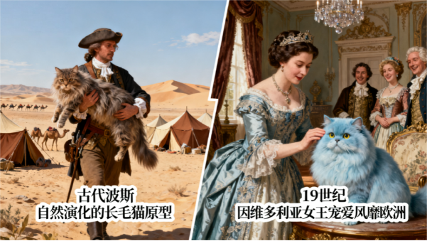 真正奠定现代波斯猫品种基础的是 19 世纪英国繁育家:他们以阿富汗土著长毛猫为基础,与土耳其安哥拉猫、亚美尼亚地区的长毛猫进行多代杂交改良,耗时近一个世纪完成基因稳定。19 世纪中后期,波斯猫因维多利亚女王的宠爱声名鹊起 —— 女王饲养的两只蓝色波斯猫成为宫廷焦点,威尔士王子(爱德华七世)在猫展上的公开褒奖更让其风靡欧洲。1871 年英国成立首个波斯猫俱乐部,1906 年被国际猫协会(TICA)前身组织承认,20 世纪初传入美国后迅速成为高端宠物市场的宠儿,甚至一度引发 “波斯猫热潮”,导致缅因猫等品种暂时衰落。如今,波斯猫已成为纯种猫的代名词,其形象频繁出现在影视、文学作品中,是优雅与高贵的象征。