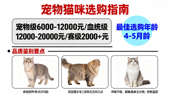 年龄选择:4-5 月龄最佳,此时长毛已初步长成,体型特征明显,且已完成基础疫苗接种;避免购买 3 月龄以下幼猫,其免疫系统尚未成熟,且短时间内难以判断被毛与体型是否符合标准。