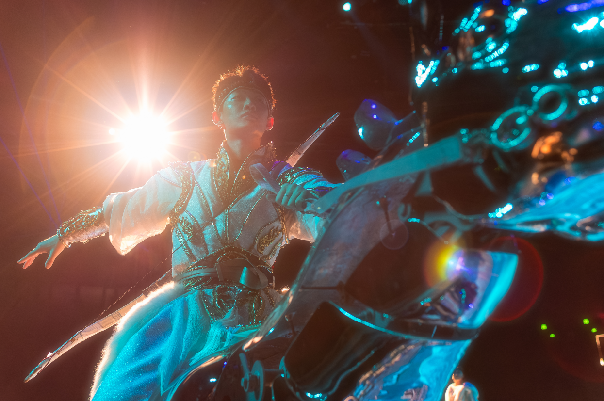 当哈尔滨的夜幕降临,一场跨越千年的史诗——《王的战车》正在冰雪秀场的舞台上磅礴上演。