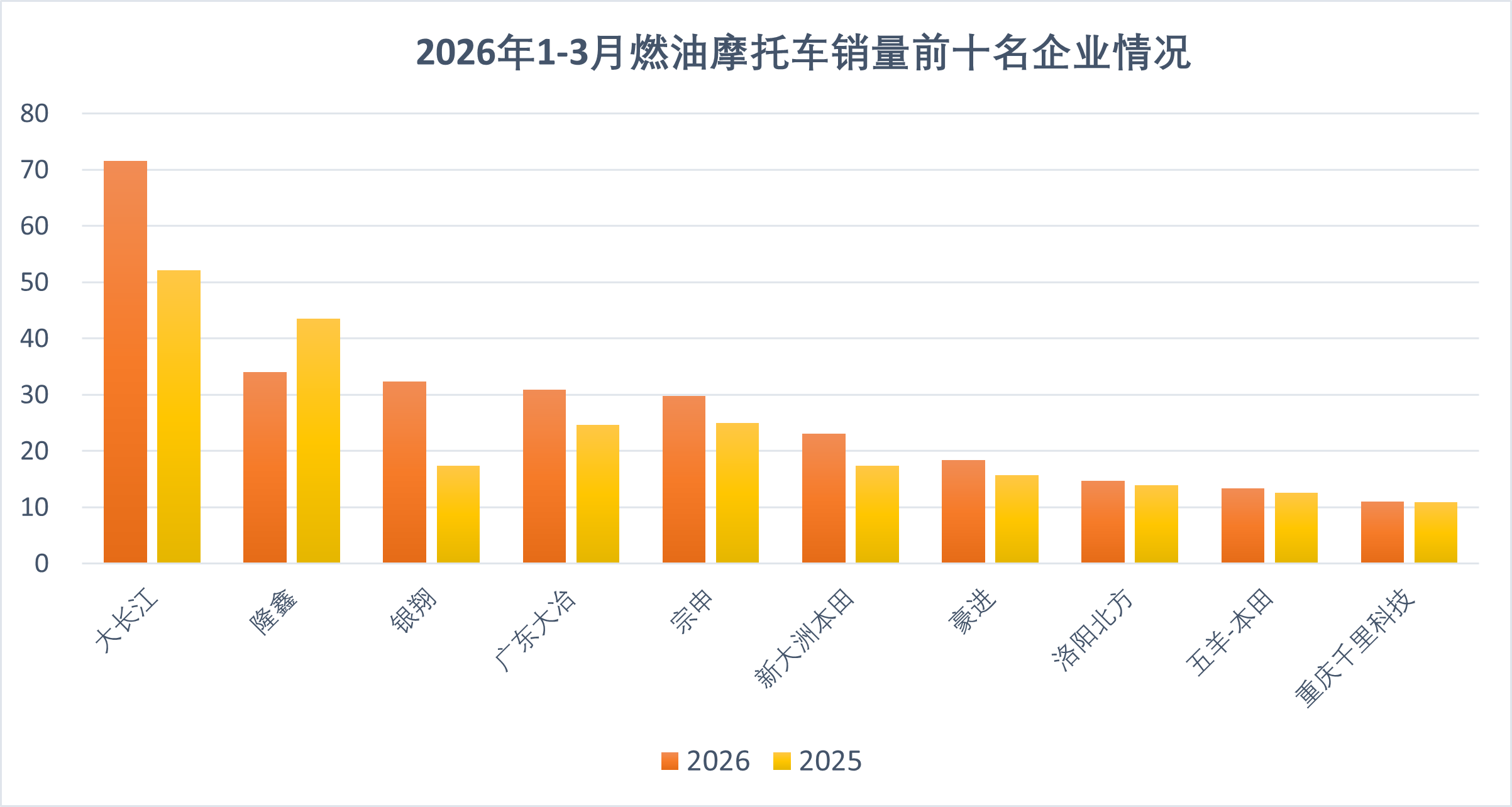 与出口的高歌猛进形成鲜明对比的是国内市场的持续低迷。一季度燃油摩托车国内销售115.35万辆,同比下降2.14%。3月当月,燃油摩托车国内销售47.91万辆,虽环比增长80.94%,但同比仍下降0.85%。业内人士分析,国内市场低迷有多重原因:宏观经济环境影响了消费者信心,电动自行车新国标实施后分流了大量短途代步需求,部分城市的“禁限摩”政策虽有松动但整体环境仍不够友好。