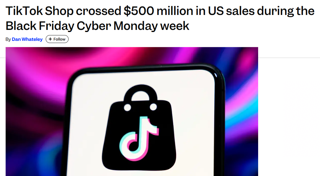 另一方面,以TikTok Shop为代表的社媒电商正在全球范围内重塑消费链路。例如,在今年“黑五网一”爆发期内,TikTok美区仅用四天总交易额便突破了5亿美元,日本站直播带货销售额更是飙升了300%。