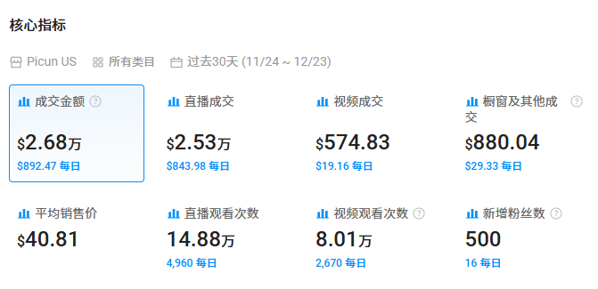 这一点从数据上可以直观看到,其账号单月成交金额为2.68万美元,其中直播成交就达到了2.53万美元,占比超过94%。可以说,直播已成为他们运营自营账号的关键打法。